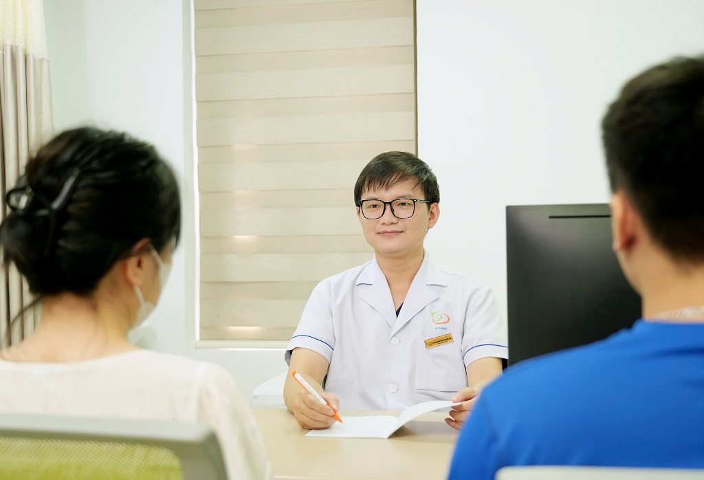 Bác sĩ Hiệp đang tư vấn cho cặp đôi.